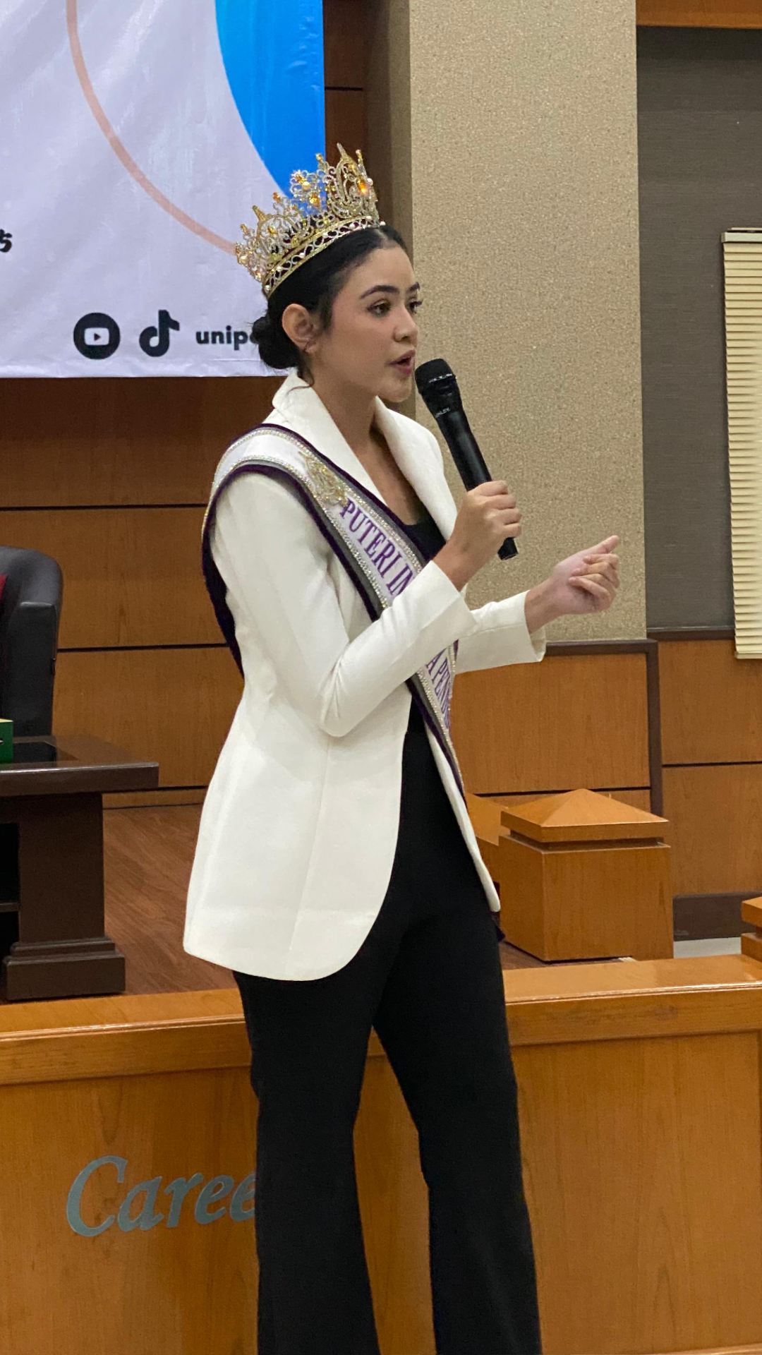 Sementara itu, Rinanda Aprillya Maharani, Putri Indonesia Pendidikan 2025, mendorong mahasiswa untuk terus mengasah kecerdasan dengan mengikuti perkembangan pendidikan yang berpadu dengan kearifan lokal. Ia juga mengingatkan agar mahasiswa bijak dalam memanfaatkan informasi, termasuk penggunaan media sosial seperti WhatsApp, Instagram, dan Facebook, untuk menambah wawasan serta mendukung pengembangan diri. “Generasi muda harus mampu berperan aktif dalam pembangunan bangsa. Pengalaman saya hingga terpilih sebagai Putri Indonesia Pendidikan 2025 menjadi bukti pentingnya semangat belajar dan konsistensi,” ungkapnya.
