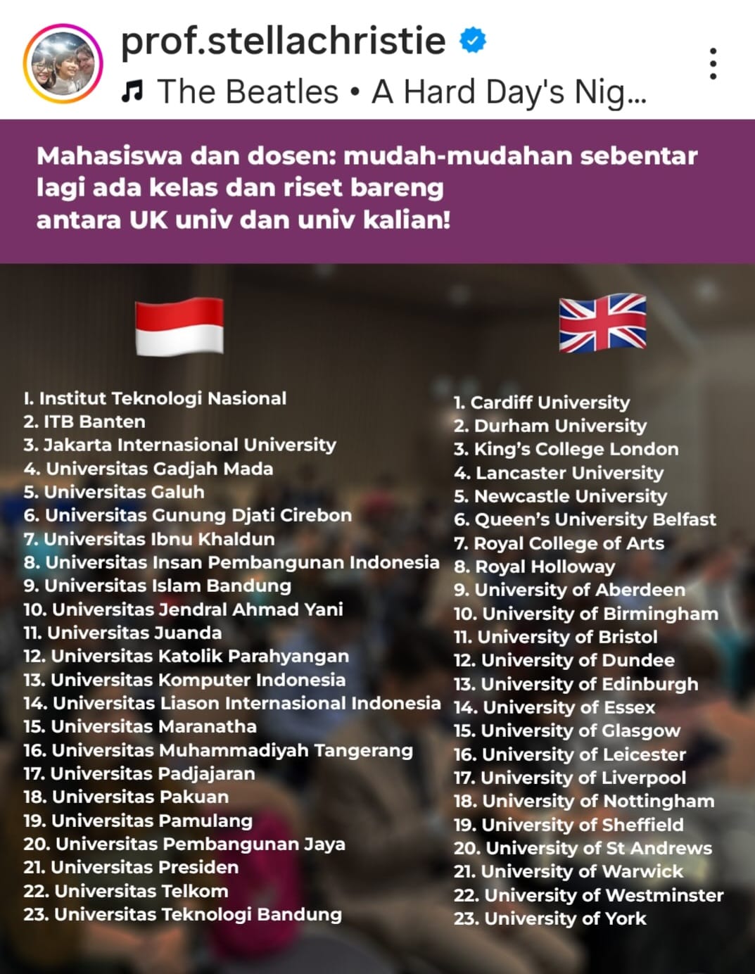 Kegiatan tersebut dihadiri oleh pemimpin pendidikan tinggi, pembuat kebijakan, dan praktisi akademik dari berbagai negara, khususnya dari Inggris dan kawasan Asia Timur. Forum ini menjadi ruang dialog strategis mengenai evolusi pendidikan transnasional, dinamika geopolitik, hingga perubahan ekspektasi mahasiswa internasional dalam lanskap global.
