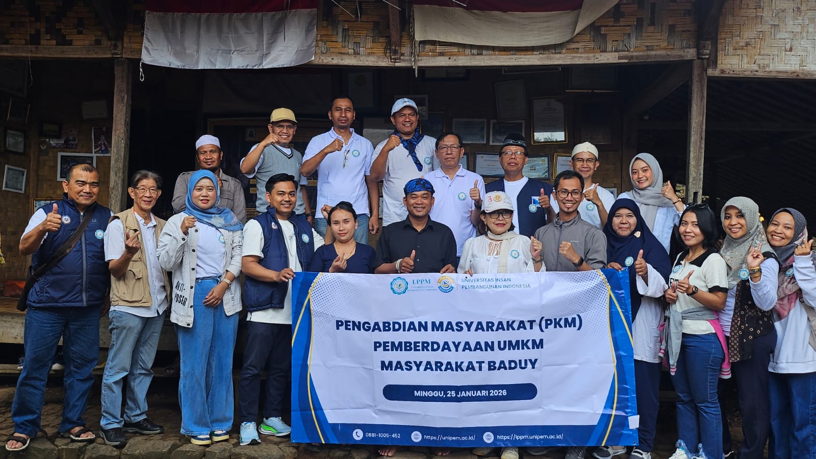 Lebak, Banten – Universitas Insan Pembangunan Indonesia (UNIPI) melalui Lembaga Penelitian dan Pengabdian kepada Masyarakat (LPPM) melaksanakan kegiatan Pengabdian kepada Masyarakat (PKM) dengan tema Pemberdayaan UMKM Masyarakat Baduy, pada Minggu, 25 Januari 2026, bertempat di kawasan Baduy, Kabupaten Lebak, Provinsi Banten.